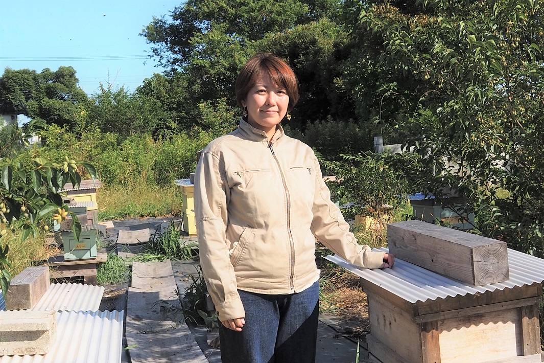 養蜂家田中麻美さんみつばち通し、環境問題考えて欲しいとのこと。