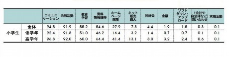 小学生のインターネット利用目的(複数回答、単位:%、出典:NIDA)