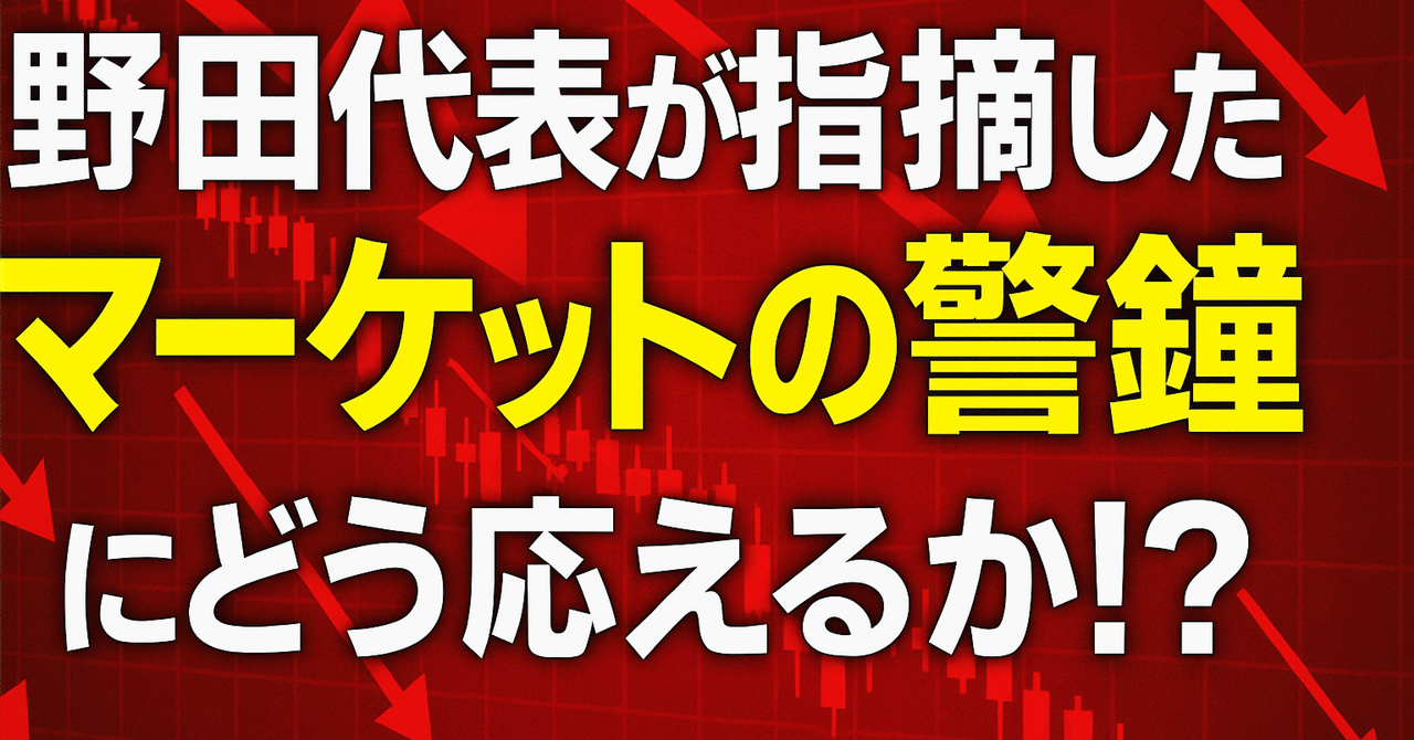 >立憲民主党の野田代表は党首討論で「マーケットによる放漫財政への警鐘」に言及し、高市総理は「成長あっての財政再建」と応じました。