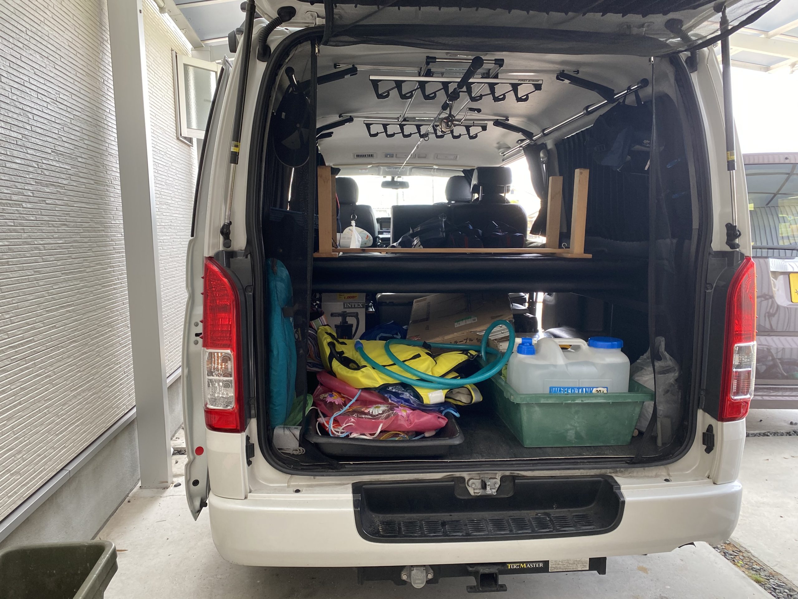 ハイエースは荷室広々なので適当にぶち込んで出発!