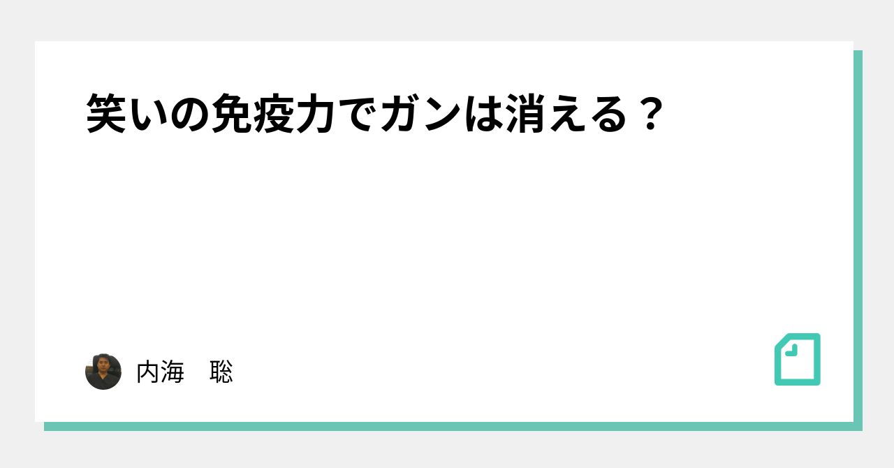ちょうどこのタイミングで、内海医師が「「笑い」が免疫力をアップすることはさまざま実験で証明されています。」という書き出しで書かれている記事を見つけましたのでシェアします。