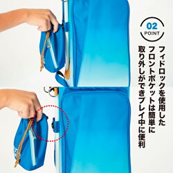 フィドロックを使用したフロントポケットは簡単に取り外しができプレイ中に便利