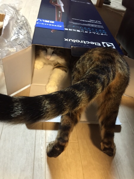 そして掃除機には興味ないけど箱には反応する子が…。