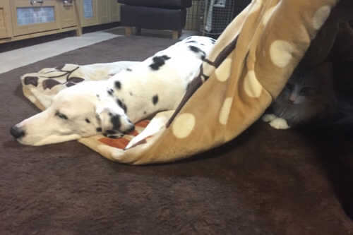 犬猫みんなで入って温度を上げるシステムです(笑)