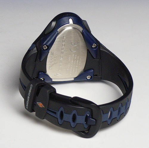 時計の裏面四方に「げた」がついてる、それだけ。しかしこいつが馬鹿にできない。汗で時計が手首に張り付くのを防いでくれる。肌が敏感な人は汗で時計が張り付くだけで痒くなったりするし、それでなくてもランニング後に汗で時計が手首に張り付くのは気分が良くないのだ。実用的アイデアだ。
