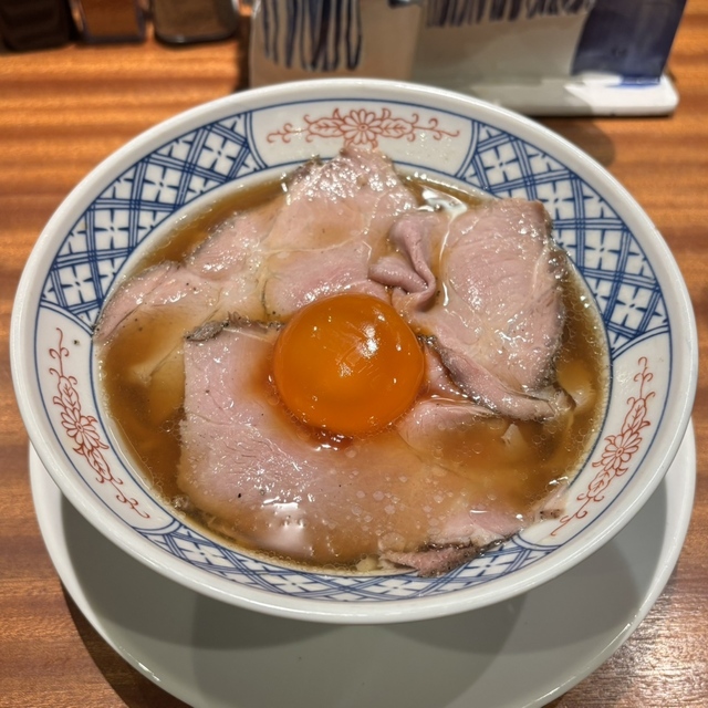 トッピングはレアチャーシュー✖2、メンマ、ネギ。