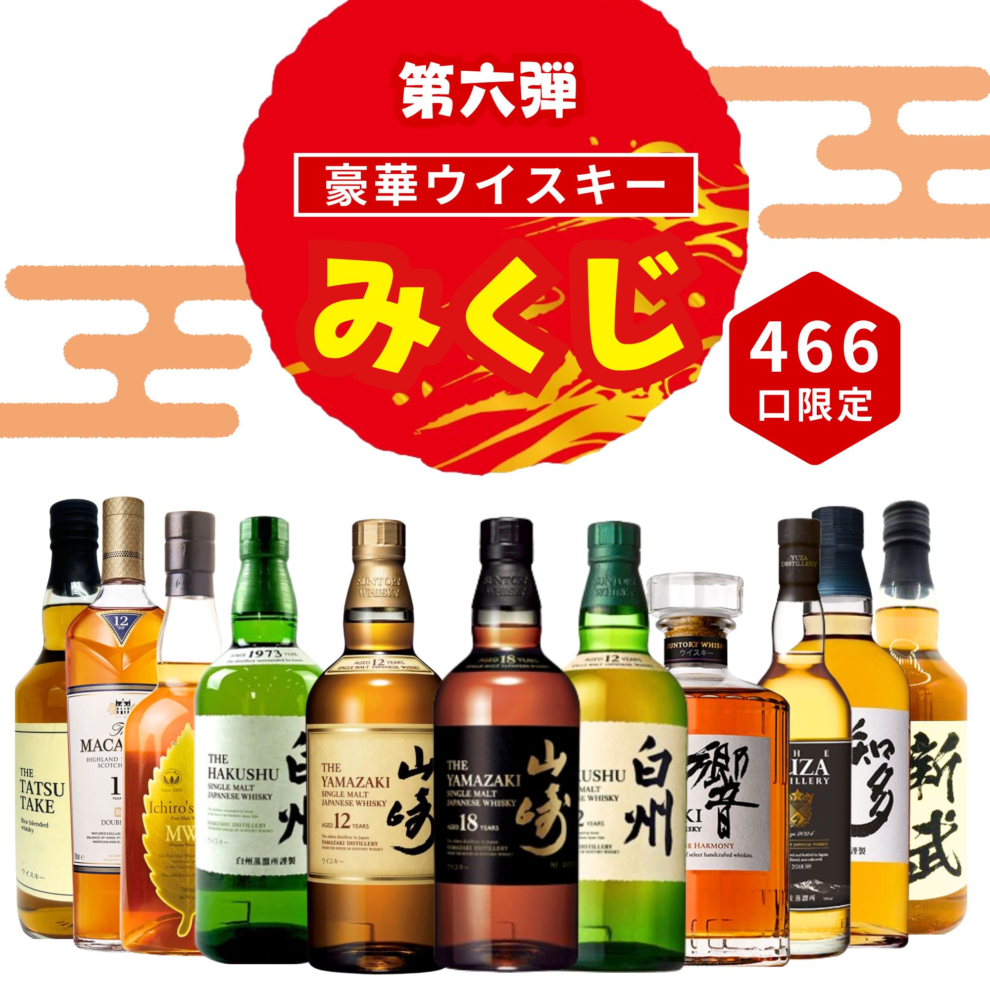 \8月28日販売開始/【第6弾】【ウイスキーみくじ 466口限定】山崎18年 山崎12年 白州12年 響ジャパニーズハーモニー イチローズ ミズナラ 知多 など 福袋 酒くじ おみくじ ウイスキー くじ 最新楽天市場${EVENT_LABEL_01_TEXT}