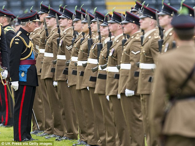 Speaking to the 500 soldiers, the Prince said: Charles added: 'The colours I have just presented continue to represent the heritage, fighting spirit and soul of this fine regiment'