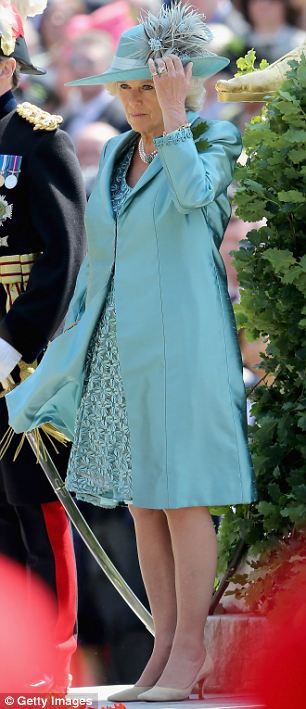 Meanwhile her husband Prince Charles donned his ceremonial attire and presented an army regiment of 500 soldiers with their new colours.