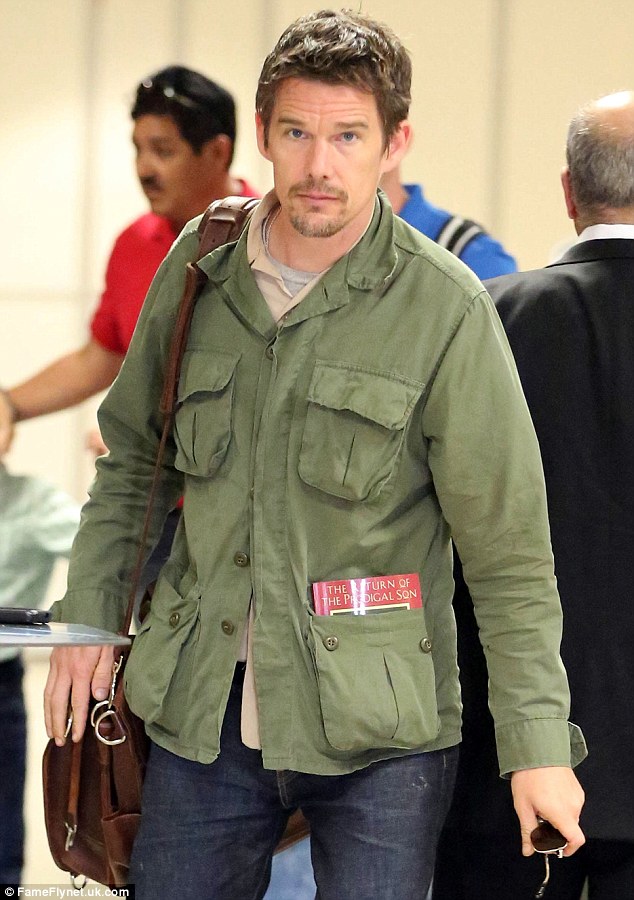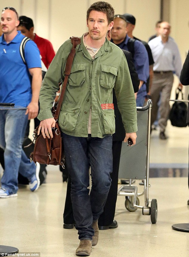 Jet-setter: Ethan Hawke was seen arriving on a flight at LAX airport in Los Angeles, California on Thursday