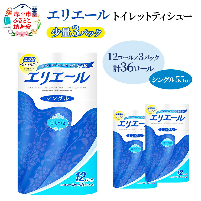 【ふるさと納税】エリエール 【少量3パック】 [アソートP] エリエール トイレットティシュー[シングル 55m]12R×3パック(計36ロール) トイレットペーパー 紙 防災 常備品 備蓄品 消耗品 備蓄 日用品 生活必需品 送料無料 北海道 赤平市 お届け:2025年3月31日まで楽天市場${EVENT_LABEL_01_TEXT}