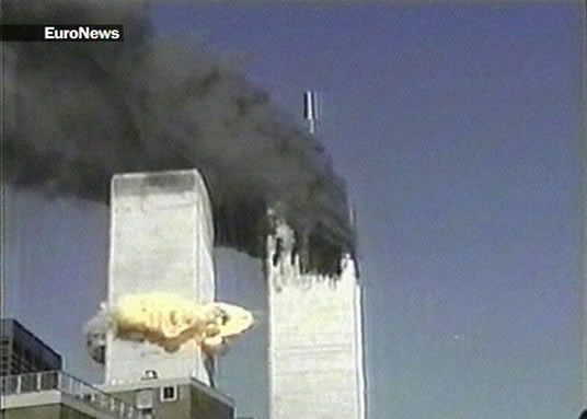 9.11のイカサマ・・・WTC2・ミサイルは存在した。 画像2点・1点目は正真正銘の本物、2点目は修正画像。
