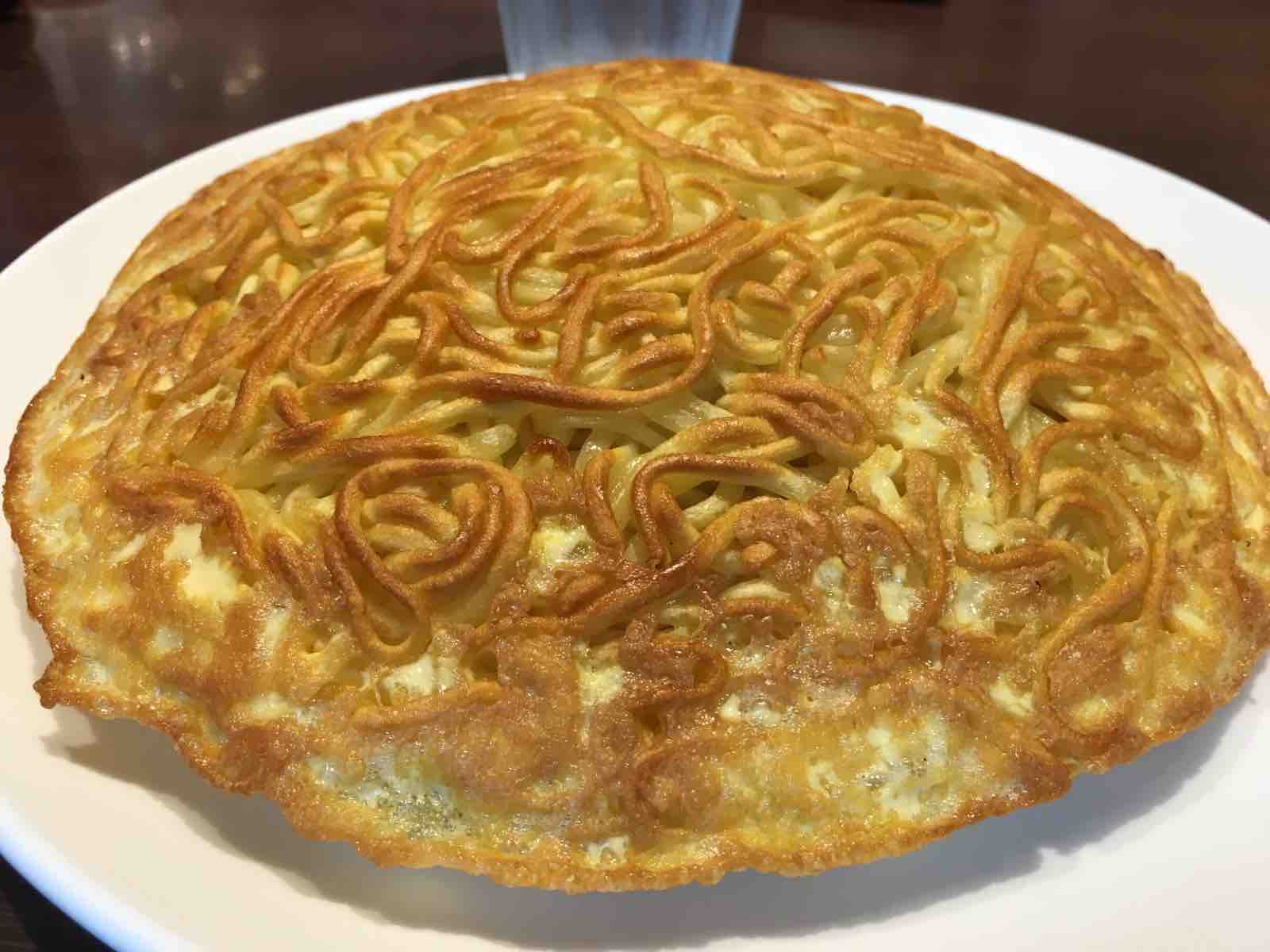 焼いた中華麺はパリパリで良い食感。そして中華麺を割ると、こんな感じ。具がたっぷりだし、中の麺は柔らかい。