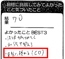 70点という点数を獲得しました。ここですごいのは、70点という数字ではありません。テストへの取り組みで良かったことBEST3に、