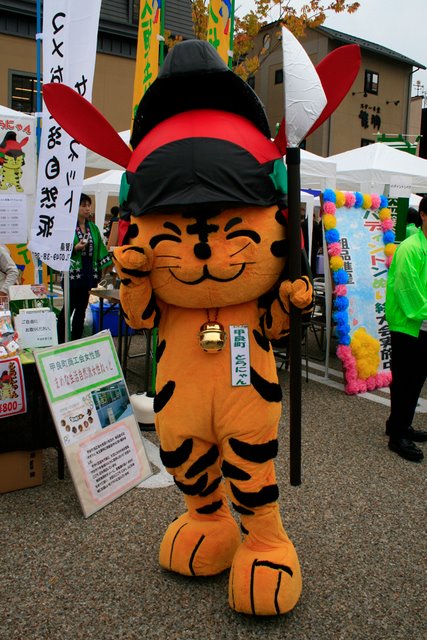 で、モチーフになってるのは、甲良町出身の「藤堂高虎(とうどうたかとら)」という武将で、キャラが「動物のトラ」になってるのは、"たかとら"の"とら"から来てる模様です(笑)。 まぁ、こじつけには思えますが、これぐらいしないと、アピールしたい内容はなかなか伝わらないですからね。とても良いと思います(^-^b(←笑)。