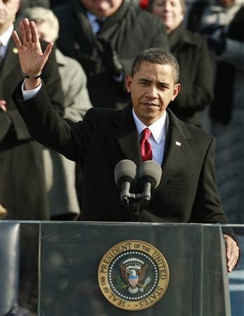 民主党のバラク・オバマ前上院議員(47)は20日正午(日本時間21日午前2時)、 連邦議会議事堂前での就任式で、米史上初のアフリカ系(黒人)の第44代大統領に就任した。オバマ氏は就任演説で「今求められているのは、新たな責任の時代だ」と