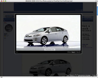 2008年10月18日 一般ニュース -社会「【ネット流出】トヨタの新型プリウス、オフィシャル写真流出! 米国トヨタも公式ブログで、流出写真を新型プリウスと認める!=TOYOTA『Prius』【 流出画像有り】」 みんなで最新の話題を作るニフティの参加型情報