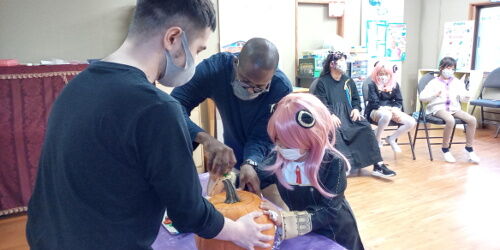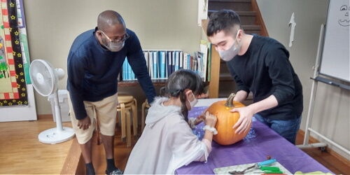 このPumpkin Carvingを初めて体験する子供たちもいて、みんなお化けかぼちゃが出来上がっていく様子をとても興味深く見ていました♪