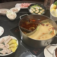 火鍋は痺れ辛いスープととんこつスープの2種類