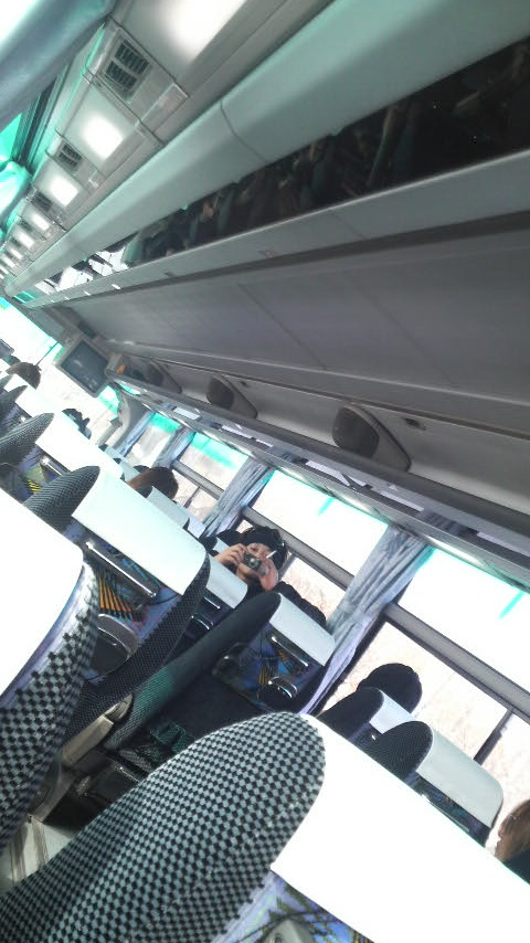 バスの中です!