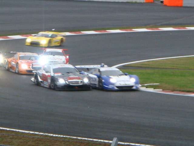 スーパーGT最終戦富士スピードウェイに行きました。天候は、昨日の天気予報とは異なり曇りしかも決勝前になり小雨で路面がハーフウェットでスタート途中路面は良くなりだしたがまた雨になり、かなりタイヤの撰びにより順位が激しく動くレースでした。こうなるとチーム戦略に定評があるニスモは強い。やはり伝統なのか知らないけど、インパルがトップに上がり、そのままチェッカー。シリーズ優勝がかかる23号車も確実に順位を上げていく。ザナビーニスモがシリーズ優勝を手中におさめた。300クラスはやはり直線が速いユンケルポルシャが安定した走りでチェッカー。こちらもシリーズ優勝はレオパレスZ、500と300でニスモ系が勝利をおさめた。しかし300はARTAの審議が提出により、まだ順位は保留になっている。多分このままだと思いますが.....