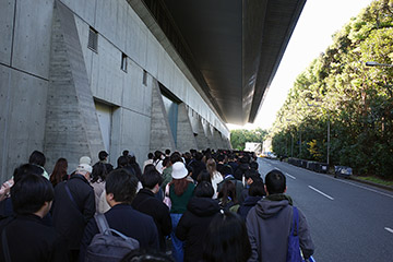 初日の6日金曜日、午前11時の開場を目指して行ったところが、それでもこの行列でした。展示ホールの"横"からメッセに入ったのは初めてです。いつも出入りは2階からですから。