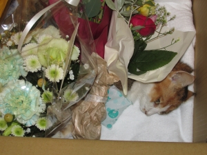 昨日はミイを荼毘に付してきました。お花で飾ってあげて、カリカリとチュールをお弁当として持たせてあげました。