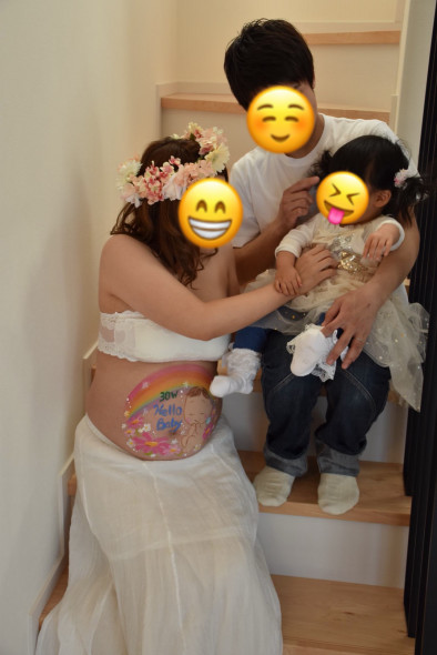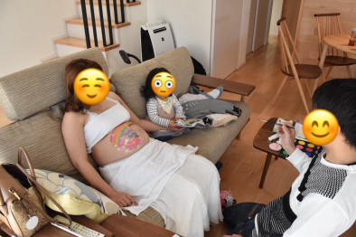 「ママがお腹出してる??お絵かきされてる!」というなかなか衝撃的な光景が目の前にあったので、しばらく目をまんまるにしていました笑 とってもかわいかったです♡