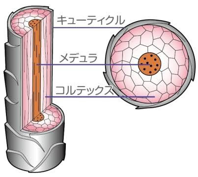 キューティクルは鱗状になっていて、これが整っていることで、サラサラツヤツヤのヴァージンヘアのような美髪になるわけです。