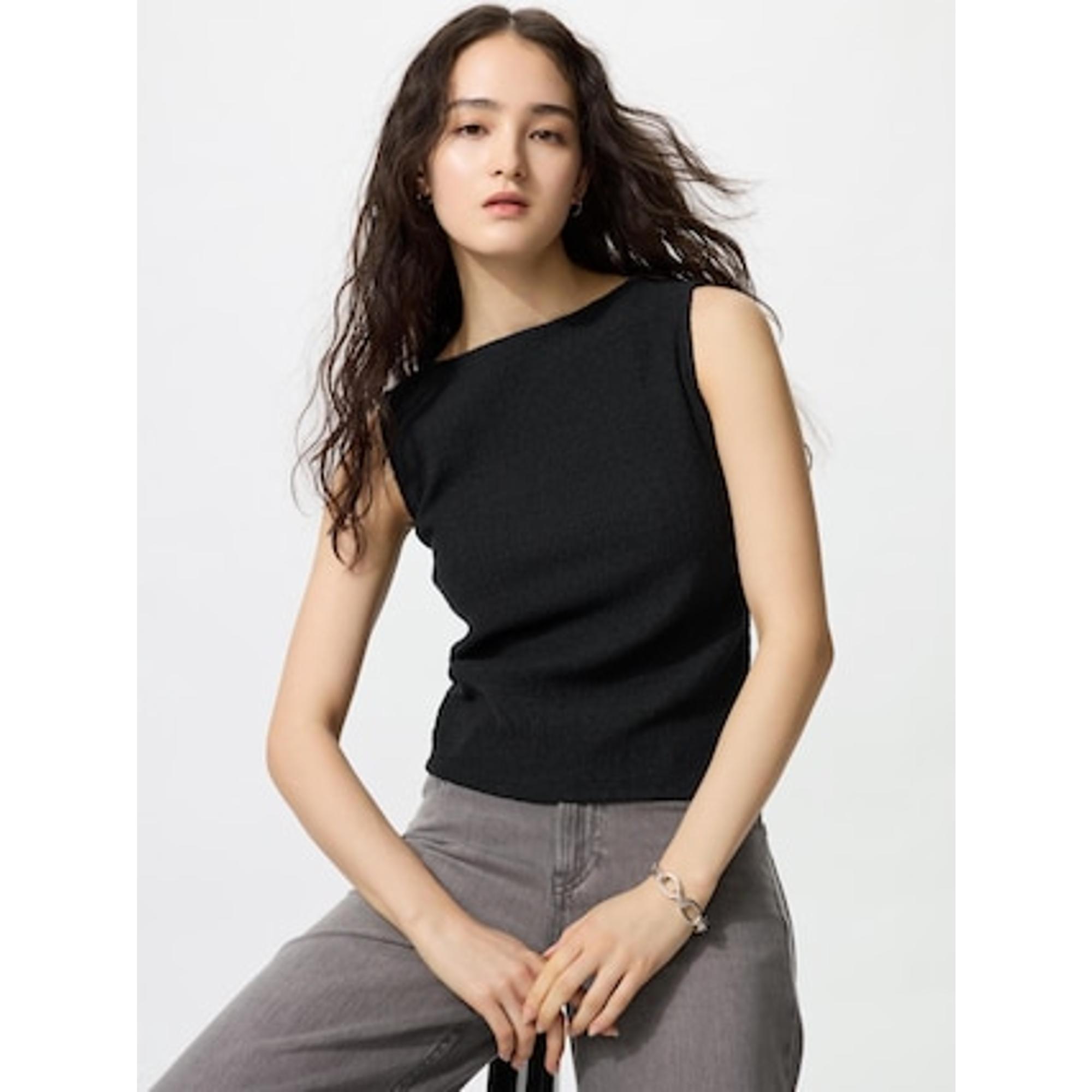 ユニクロのシャーリングボートネックTノースリーブ![]()