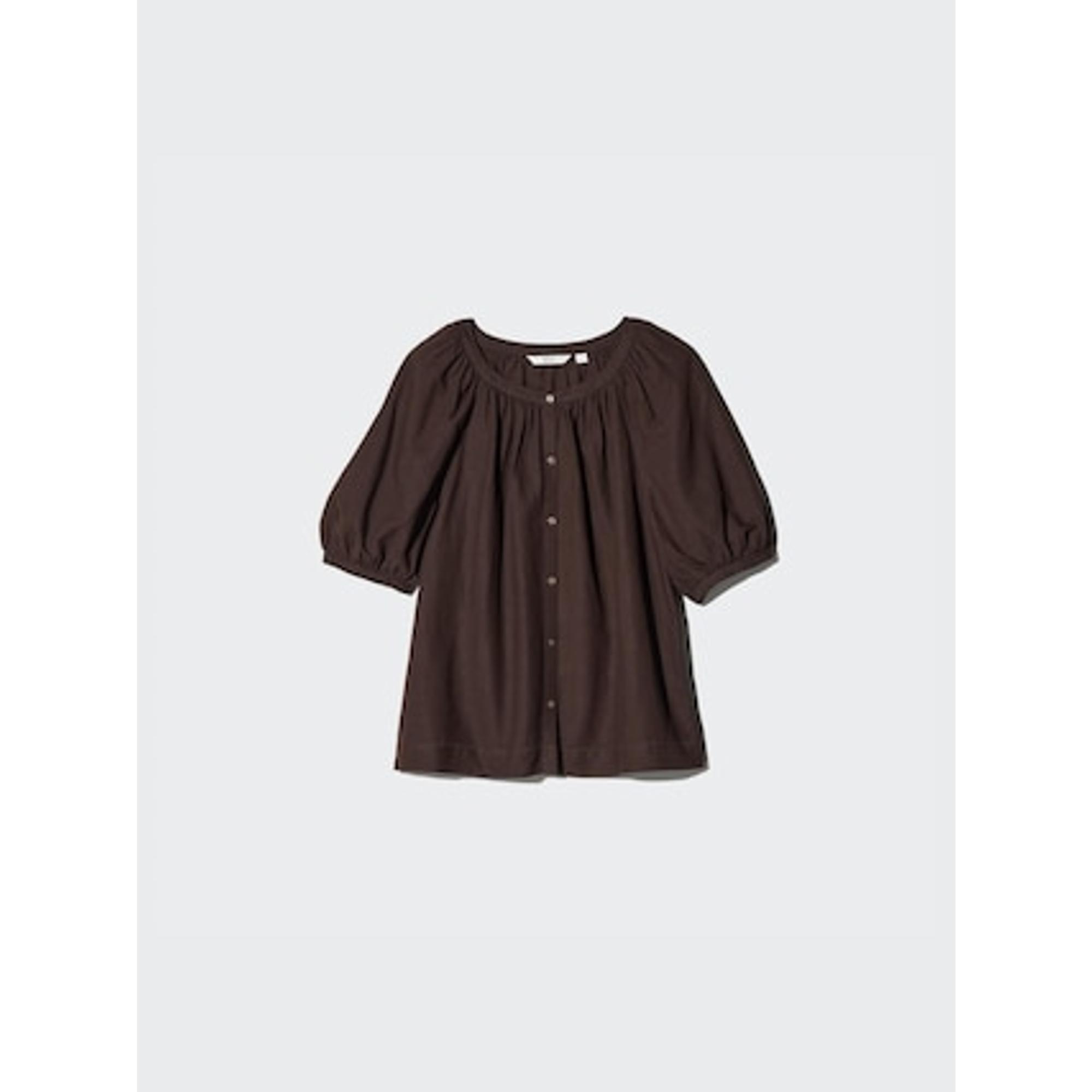 リネンブレンドボリュームスリーブブラウス
