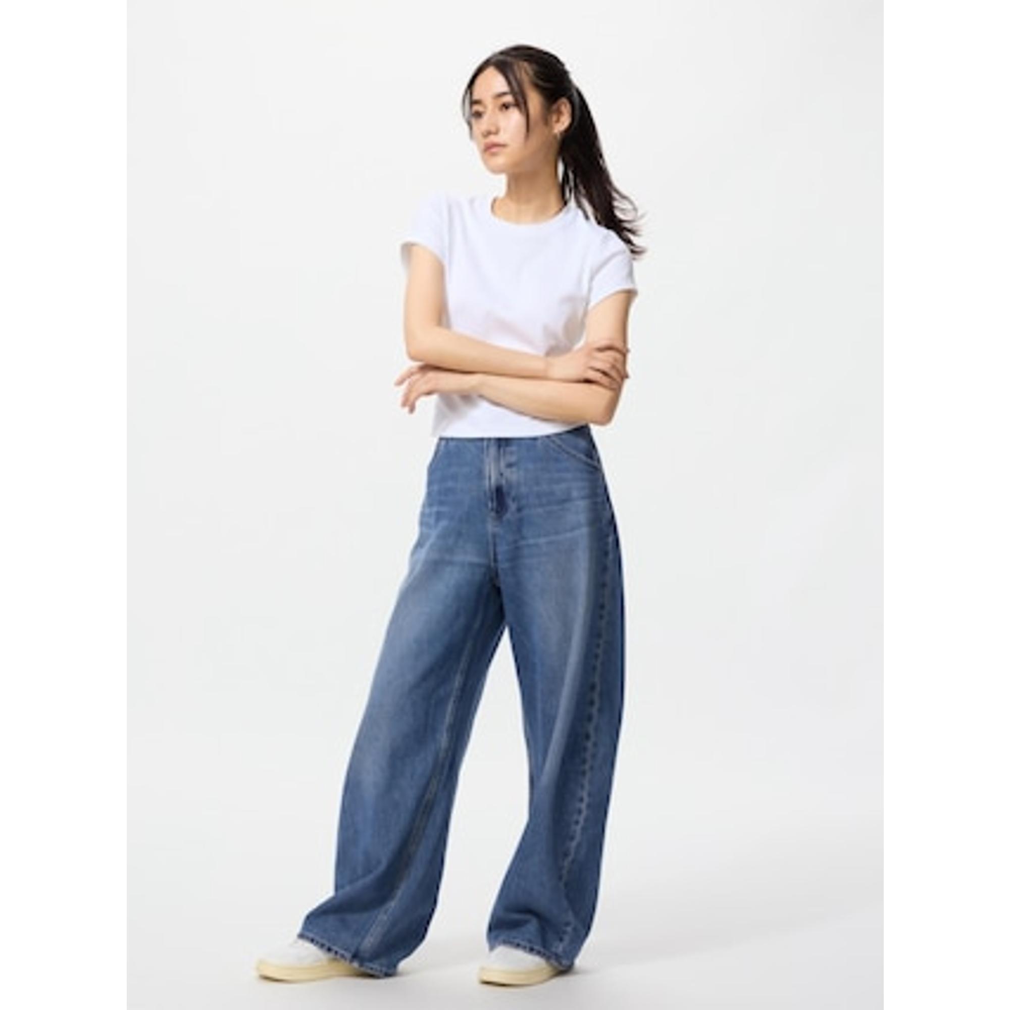 このバギーカーブジーンズは下半身にボリューム出るのでなんだか対比でくびれがあるように見えます![]()