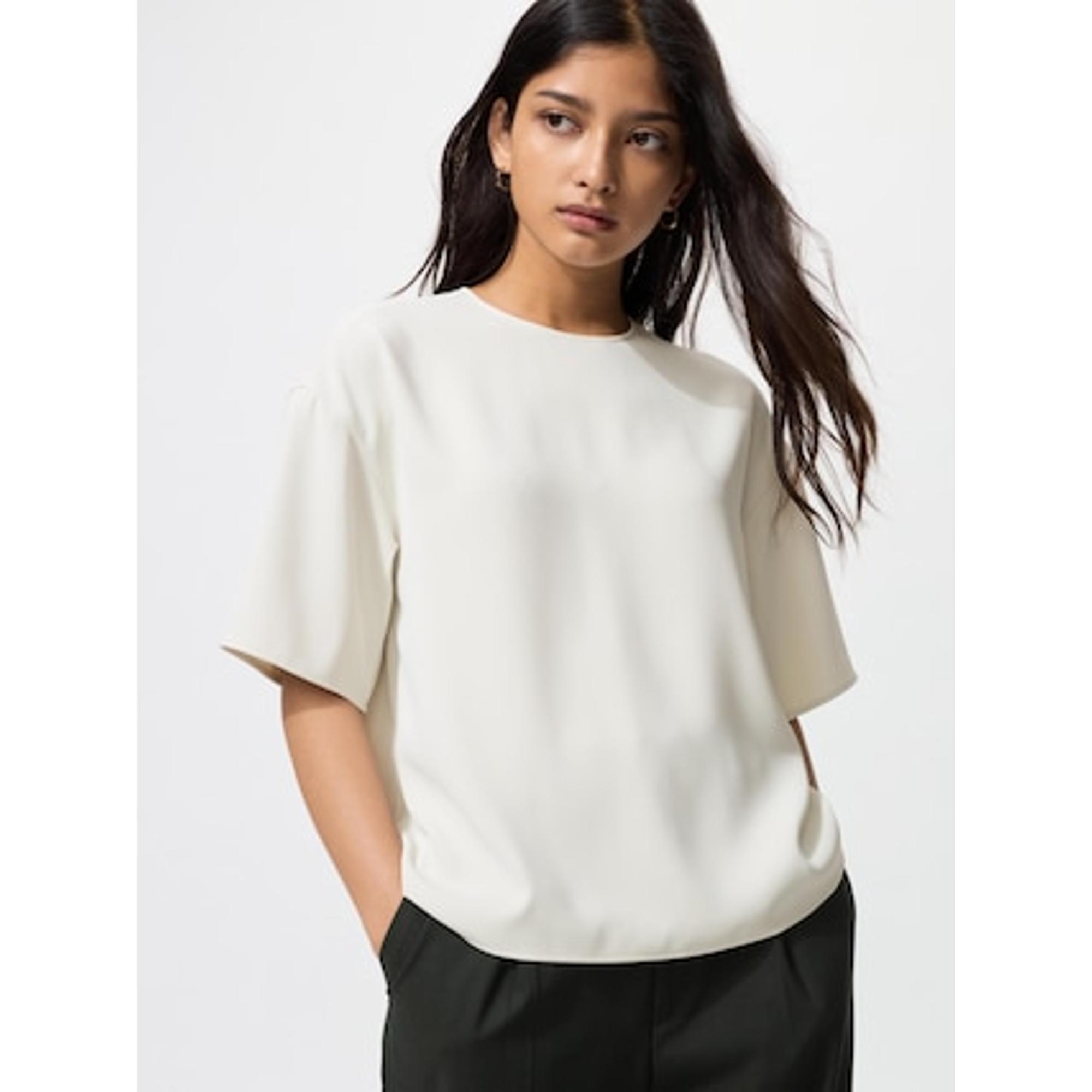 シンプルだけど、とろみ素材。光沢もあり女性らしさがちゃんとあるドレープTブラウス。万能に使えますよ![]()