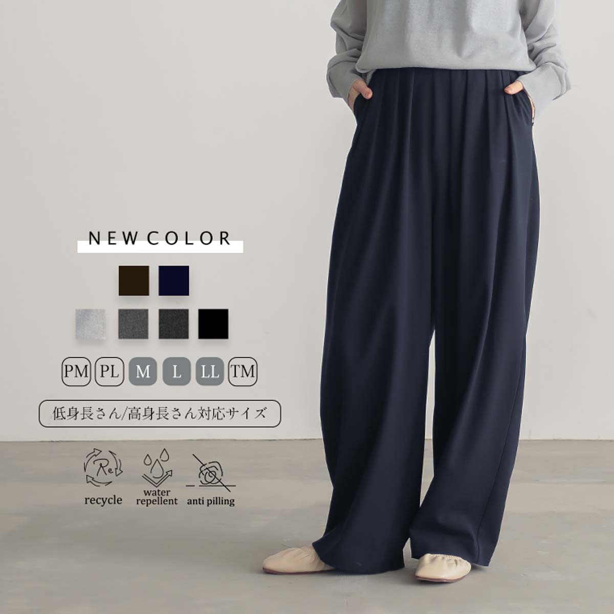 ウエストゴムでお腹楽ちん。私は身長161cmでTMサイズをいつも履いてます。ちょっと緩め、ちょっと長めがいい。でも長すぎると野暮ったくなるかも![]()