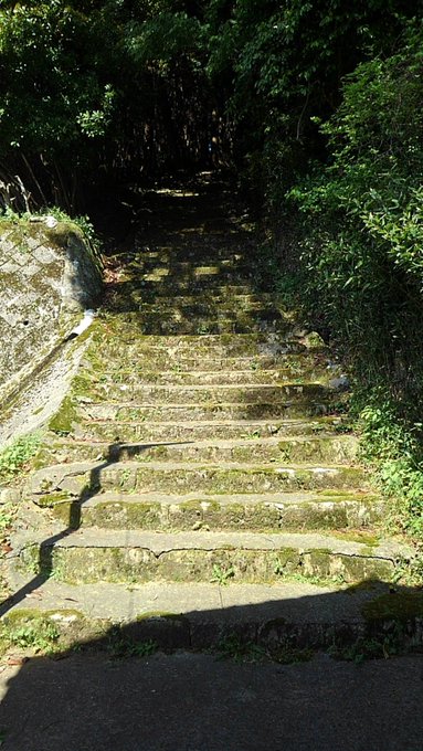 盤筒男神社の石段、180段。上を見上げて、上るのを止めました。15:02:45