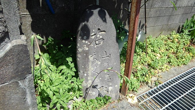 太田井橋を渡って右に曲がり県道53号を200mほど行くと左に分岐した道脇に道標「右 山さき ちくさ 道」があります。指し示す方向が違うので移設したものだと思います。 10:24:46