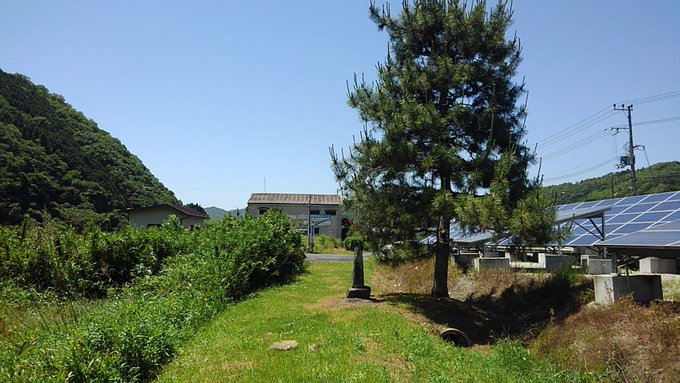 このあたりの太陽光パネルの裏側に一本松の一里塚があるとのことですが、なかなか見つかりません。12:53:47