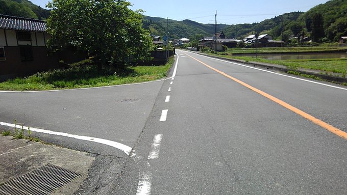 国道から離れ左に入り、越田和集落の中を歩き、再び国道179号に出ます。 14:14:40