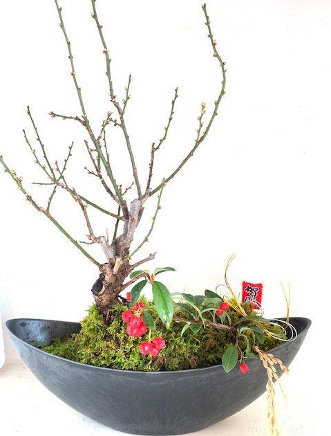 (1)お正月アレンジ (2)寄せ植え