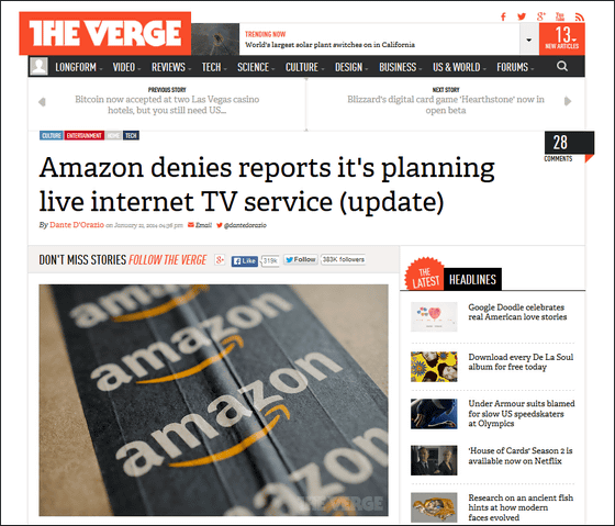また、2013年にAmazonはRokuやApple TVのようなセットトップボックスを販売するのではと噂されていましたが、これはまだリリースされていないので「Amazonが計画しているオンライン上でのテレビ番組配信サービスは、このセットトップボックスとともにリリースされるのではないか」とThe Vergeは推測しています。