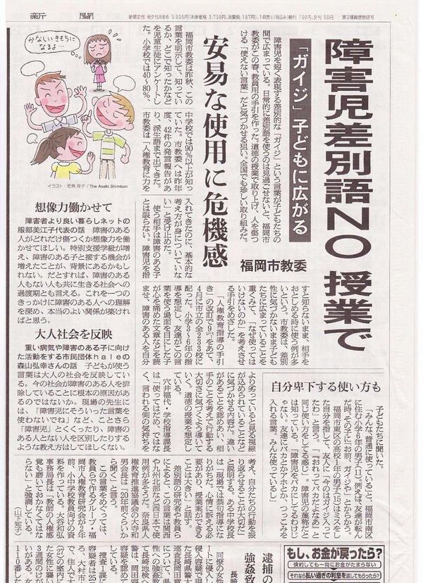 新聞記事で、『ガイジ』 という言葉が取り合えげられていた模様