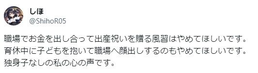 という事で、職場でお金を出し合って出産祝いを贈る風習辞めて欲しい