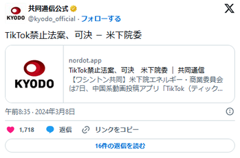そういえば、前から言われてましたがついにアメリカさんで、Tiktok禁止法案が可決したようですね
