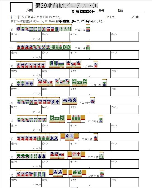 なんか麻雀のプロテストの筆記試験問題が乗っていたのでコピペ