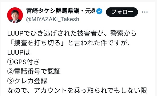 LUUPがうっすら嫌われてるのって元ツイートに加えて普段は法規変更や認可に腰の重い国交省と警察庁がことLUUP に関してはあれだけスムーズに許可した不気味さもあると思う。どんなロビイング活動したのか興味ある。 https://t.co/rX9zpENIyB pic.twitter.com/dcuLgRxjEr