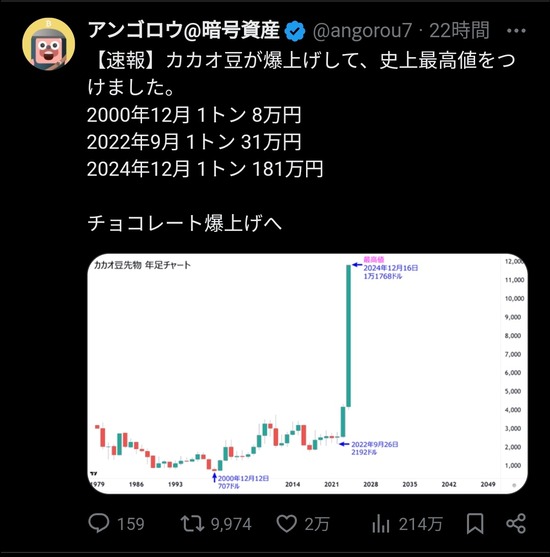 という事で、更にカカオ豆の値段上がった訳ですか