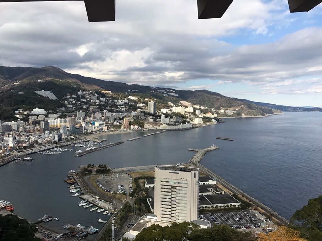 熱海港の「山麓駅」から「八幡山山頂」まで約3分の空中散歩。全面ガラス張りで、熱海の街並みを望めます。日本一短いロープウェイなんだそうです。