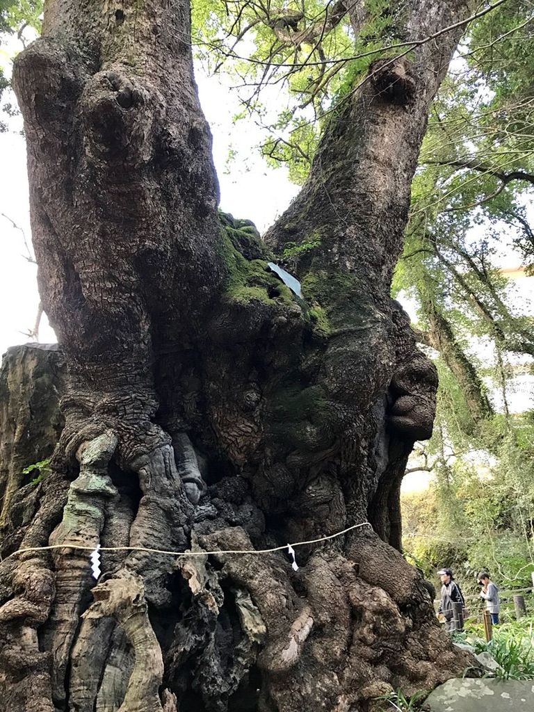 境内にそびえたつ樹齢二千年以上の大楠は、幹を一周りすると一年寿命が延びる、願い事がまとまると伝えられています。パワースポットとしても有名です。