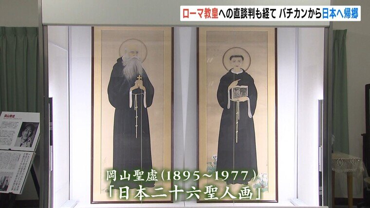 安土桃山時代に長崎で殉教したキリシタン26人が描かれ、バチカン美術館で保管されていた肖像画「日本二十六聖人画」のうちの2枚の展示が
