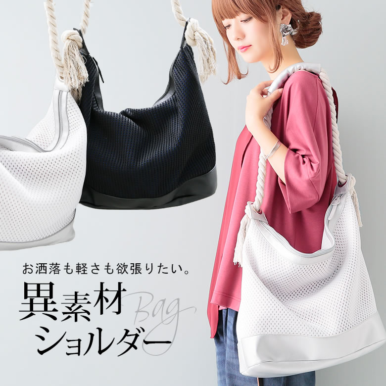 『n'Or異素材ロープショルダーバッグ』【 バッグ レディース トート メッシュ ニュアンス こなれ A4 配色 モード レザー調 機能的 ハトメ 収納力 ノアール 】※返品交換不可※【メール便不可】楽天市場3,289円